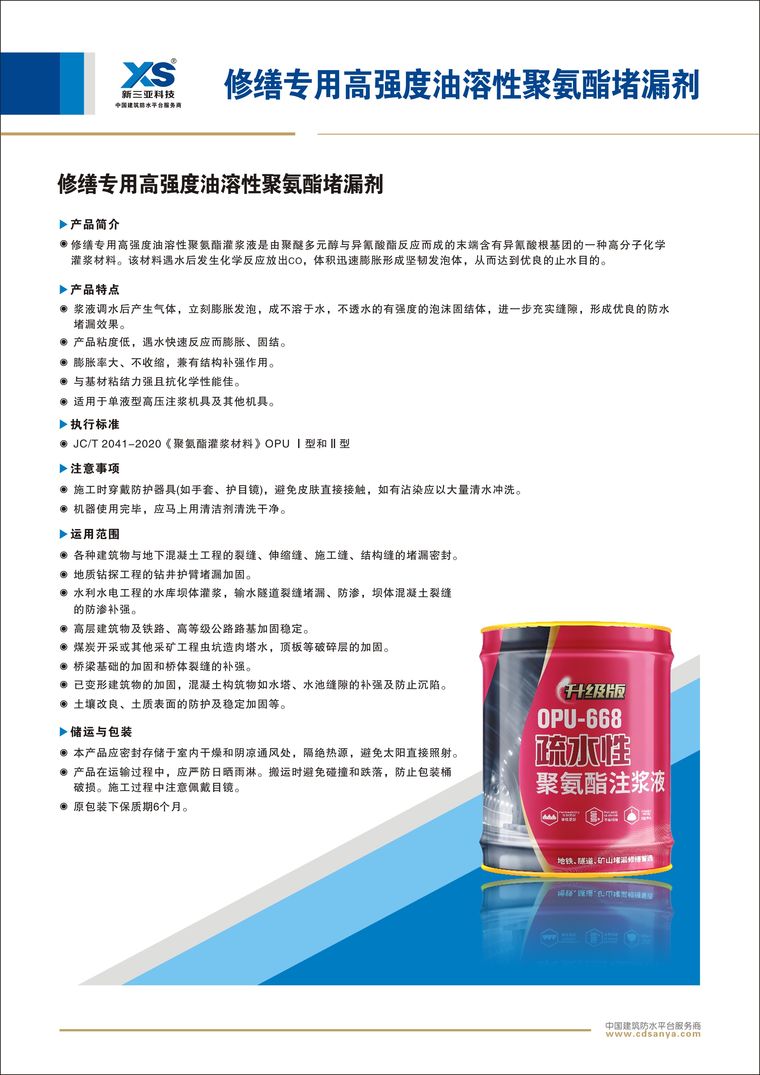 高強(qiáng)度油溶性聚氨酯堵漏劑(Ⅱ型 疏水性) | |